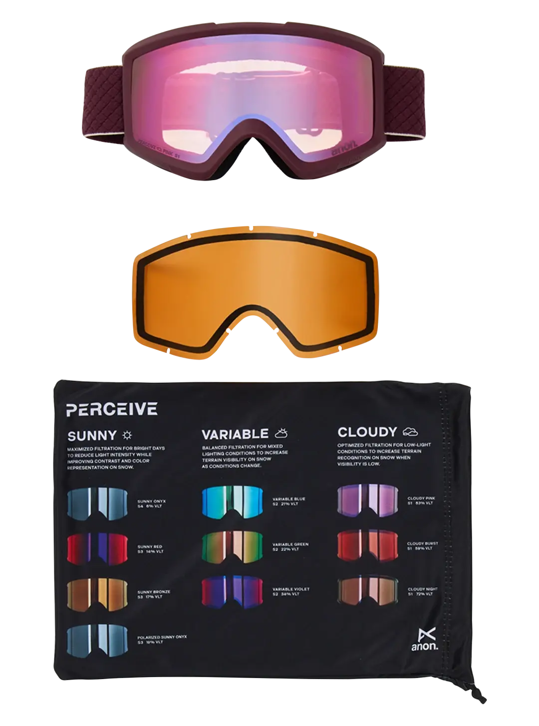 The Anon Helix 2.0 Goggles offer the terrain-defining clarity of our Perceive lens with the wide field of view and low-profile design of a cylindrical lens. Full-perimeter venting and our best anti-fog treatment maintain sharp optics through a wide range of temps and weather conditions. They include a bonus lens so you can choose the best tint for the conditions. They are over the glasses compatible and include a microfiber bag for storage and lens cleaning.