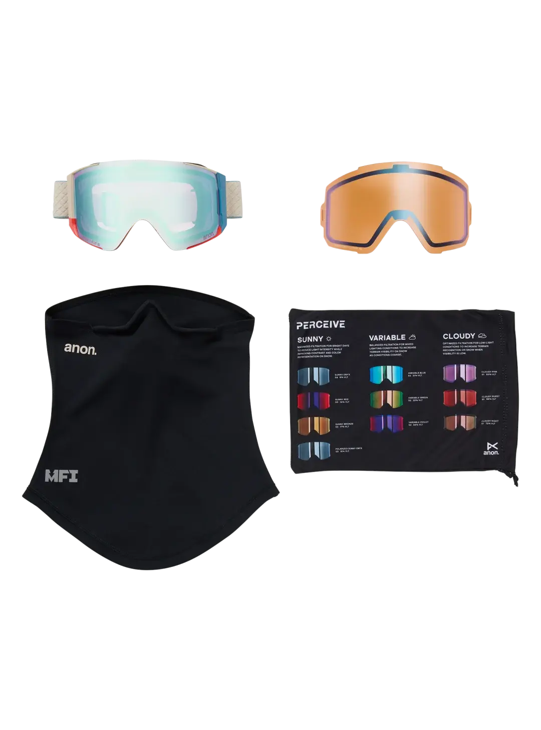 ANON Sync Goggles + Bonus Lens + Mfi Face Mask Oat / Perceive Variable Blue / Perceive Cloudy Pink