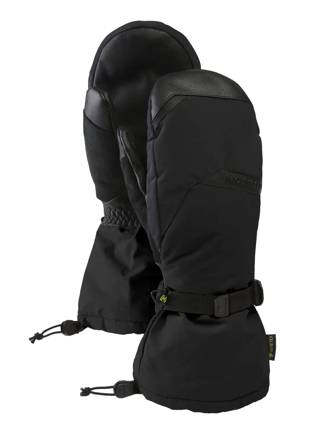Grabbing gear. Cranking buckles. Zipping zippers. The men's Burton GORE-TEX Deluxe Mittens double down on stormproof warmth and durability thanks to a liner glove and insulated GORE-TEX shell. These are the mittens for riders who just want one pair they can wear any day of the season. Leather palms add durability in high-wear zones, and an extended gauntlet seals out cold and snow.